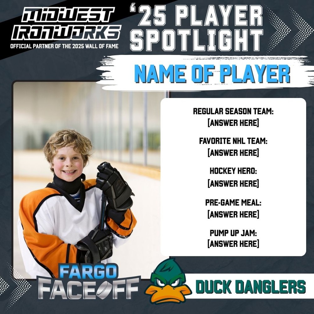 Back by popular demand, the 2025 Player Spotlight presented by Midwest Ironworks is returning for its second year, leading up to the Fargo FaceOff - fall tournament.